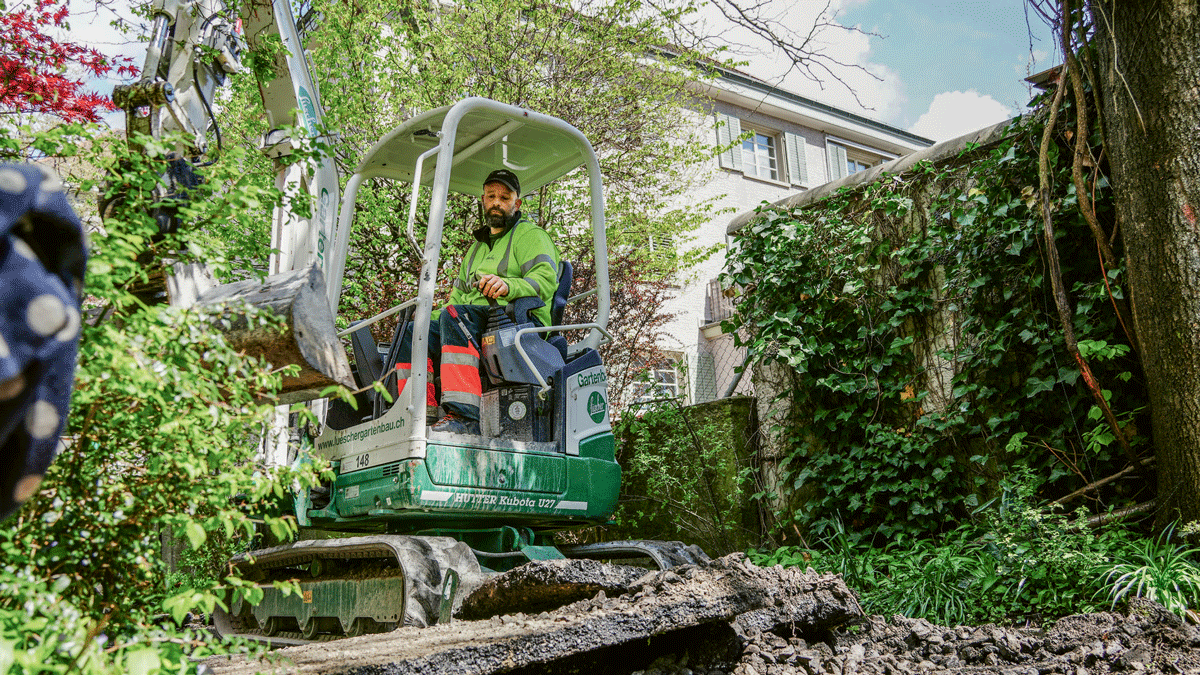 Dies war in der Siedlung Ottostrasse der Allgemeinen Baugenossenschaft Zürich (ABZ) im Zürcher Kreis 5 der Fall. «Zusammen mit einer Gruppe von Bewohner:innen haben wir diesen Frühling den in die Jahre gekommenen Spielplatz im Innenhof umgestaltet und beschlossen, die Fallschutzplatten aus Gummi durch Rundkies zu ersetzen», erzählt Mirco Huber, Teamleiter Aussenraum der ABZ. «Uns störte aber auch das Sammelsurium aus Verbundstein und anderen Belägen im Innenhof. So hat das eine das andere ergeben und wir haben uns nebst dem Spielplatz gleich auch noch die asphaltierten Wege und den Gemeinschaftsplatz vorgeknöpft.»