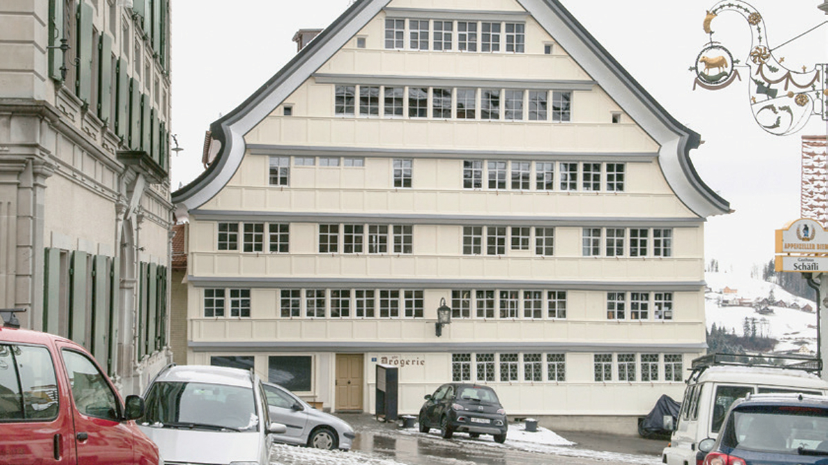 Reger Betrieb herrscht an diesem Dienstagmorgen nicht gerade. Weder am beschaulichen Bahnhof Trogen, wo die S21 nach kurven- und aussichtsreicher halbstündiger Fahrt von St. Gallen endet, noch in der Alten Drogerie etwas weiter unten. Der grosse Holzstrickbau aus dem 17. Jahrhundert steht mitten im Herzen der 1700-Seelen-Gemeinde, nur ein paar Schritte entfernt vom Landsgemeindeplatz, wo man(n) bis vor zwanzig Jahren noch regelmässig über die Geschicke des Kantons abstimmte. Der typische Appenzellerbau kann sich durchaus sehen lassen neben all den anderen stattlichen Häusern und Palästen der Textilbarone, die einst den Wohlstand in den Ort brachten: sieben Stockwerke hoch, frisch renoviert, blitzblanke Fassade, Butzenfenster im Erdgeschoss. Ein wahres Bijou. Und seit einem Jahr auch ein Mehrgenerationenwohnhaus. Wobei das gleiche Rezept gilt wie früher bei den Kräutertinkturen: Die richtige Mischung machts.