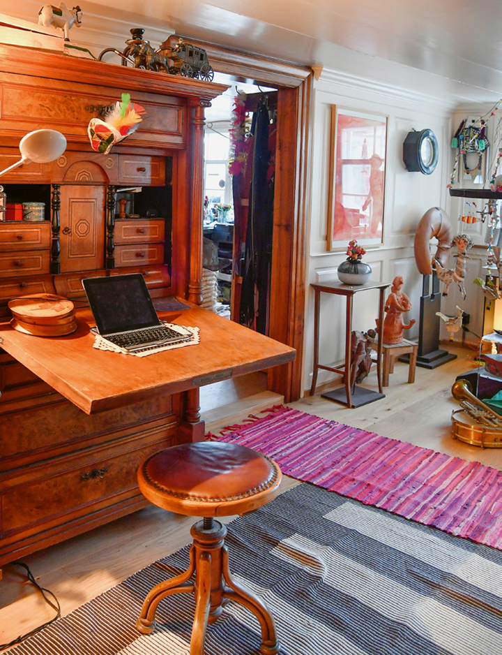 Zeit auch für uns für einen Rundgang durchs Haus. Dank der behutsamen Sanierung hat es sein ursprüngliches Flair behalten. Schönes Täfer, kunstvoll gezimmerte Türen, originale Einbauschränke, breite Fensterfronten. Nur wo unbedingt nötig, wurden Dielen, Fenster oder Geländer ersetzt. Zeitgemässe Ergänzungen sind die modernen Badezimmer, ein angebauter Lift und Balkone, die schöne Ausblicke über die Hügel bis zum Bodensee erlauben. Sehr stimmig alles, und sogar das dezente Knarren der Böden wirkt genau richtig – heimelig, nicht aufdringlich. Auch für die Wohnungen, in die wir hineinschauen, gilt: alles charmant und sehr schön.